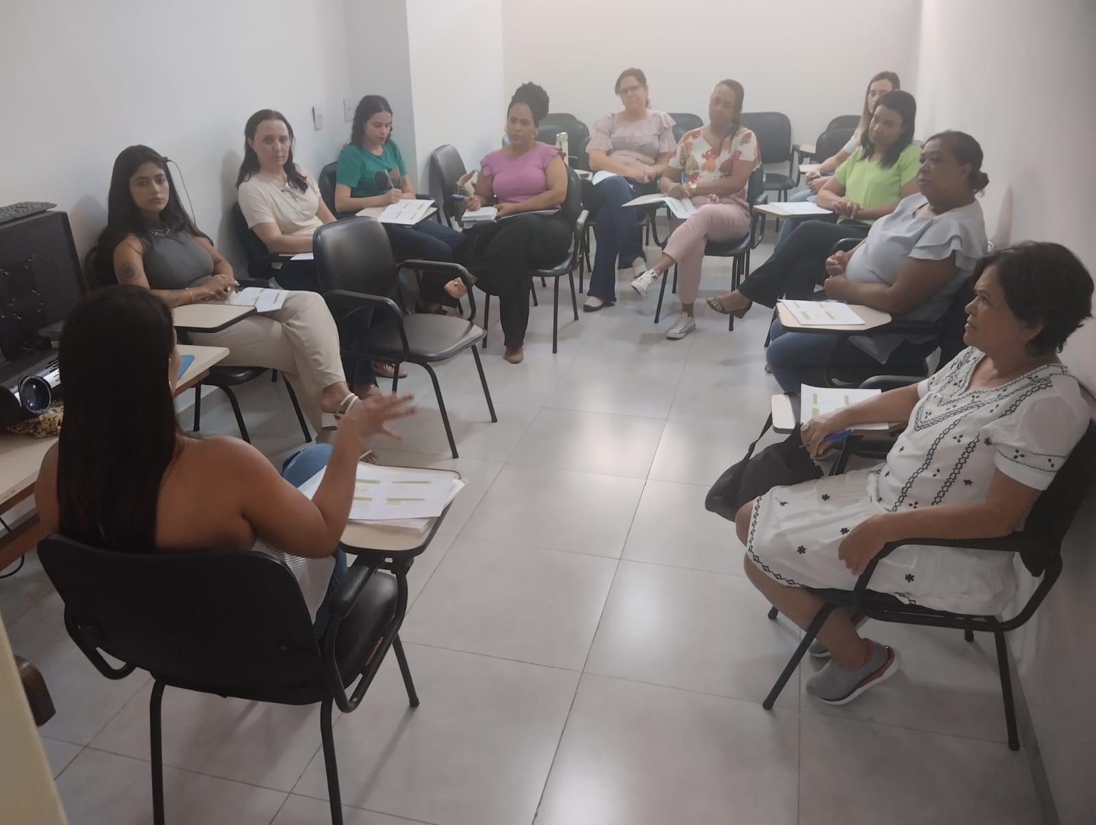 Na ocasião, a assistente social e coordenadora do Centro de Referência Especializado de Assistência Social (Creas) da Secretaria Municipal de Assistência Social, Tatiana Meireles, explanou aos profissionais sobre o funcionamento do Creas, seu trabalho e função social com as famílias atendidas, encaminhamentos e atuação conjunta com a Secretaria Municipal de Saúde.