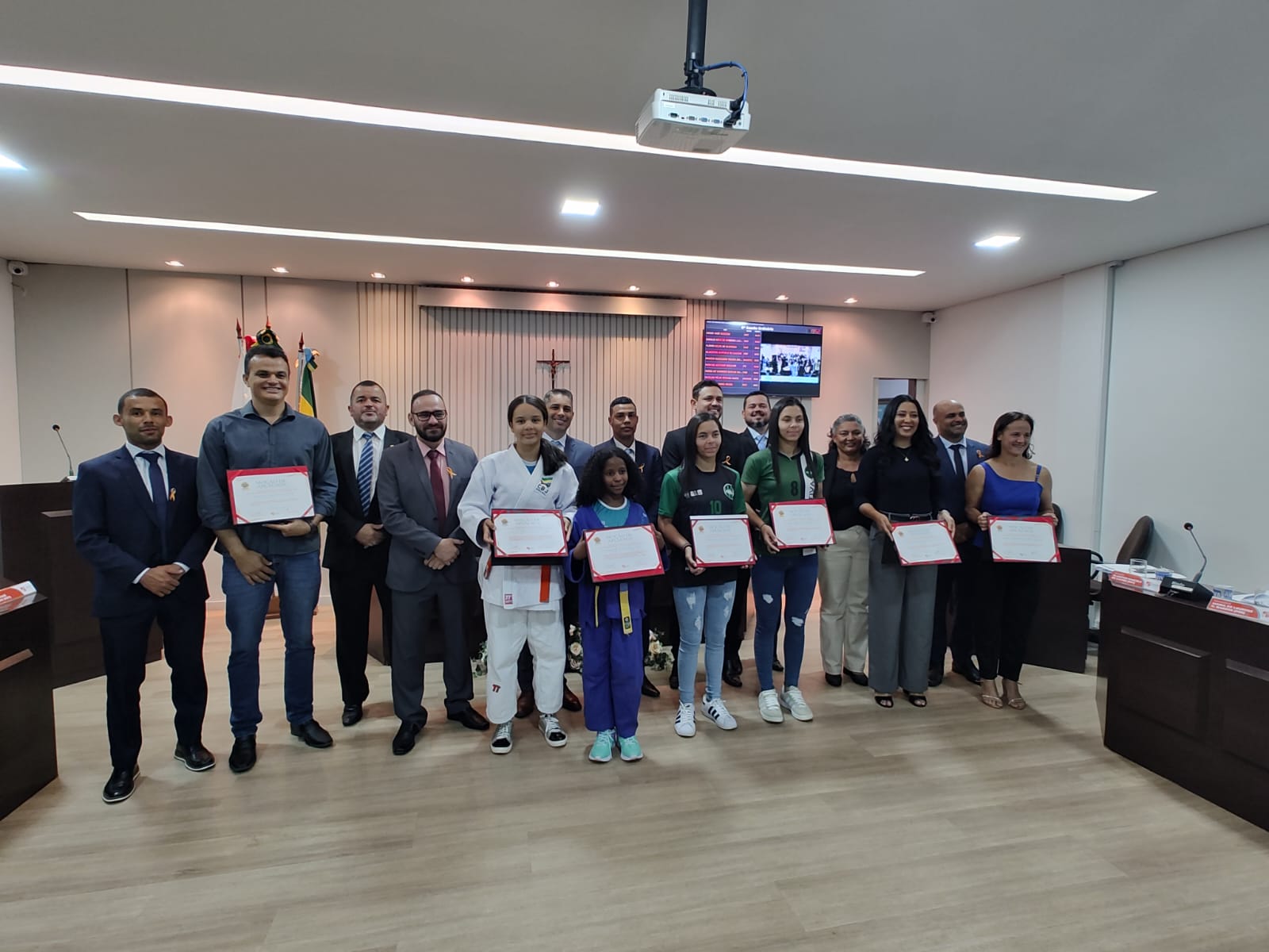 Na sequência discursaram Eduvirges Aparecida Gomes de Souza, mãe da atleta Marcela Vitória Gomes de Souza e Ricardo Luiz Santos Freitas, sensei da modalidade no município, representando a Secretaria de Esportes, Lazer e Juventude. Oito dos nove vereadores, utilizaram a Tribuna, destacando os homenageados da noite. Discursaram: O Presidente Marlon Tulio; o Vice-Presidente Rafael Neves; o Secretário Marcio Raimundo; além dos Vereadores: Gladston de Castro, Flávio Silva, Marcos Bicalho, Diego Ribeiro e Edirlei Júnior.