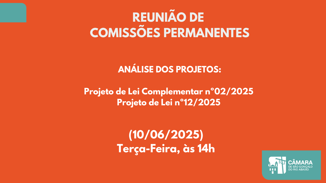 A Câmara Municipal de São Gonçalo do Rio Abaixo convocou uma nova Reunião de Comissões Permanentes, acerca de 2 projetos, lidos na última Sessão Ordinária. As pautas são respectivamente, de origem do Executivo Municipal e do vereador Marcio Raimundo Moura Amâncio.