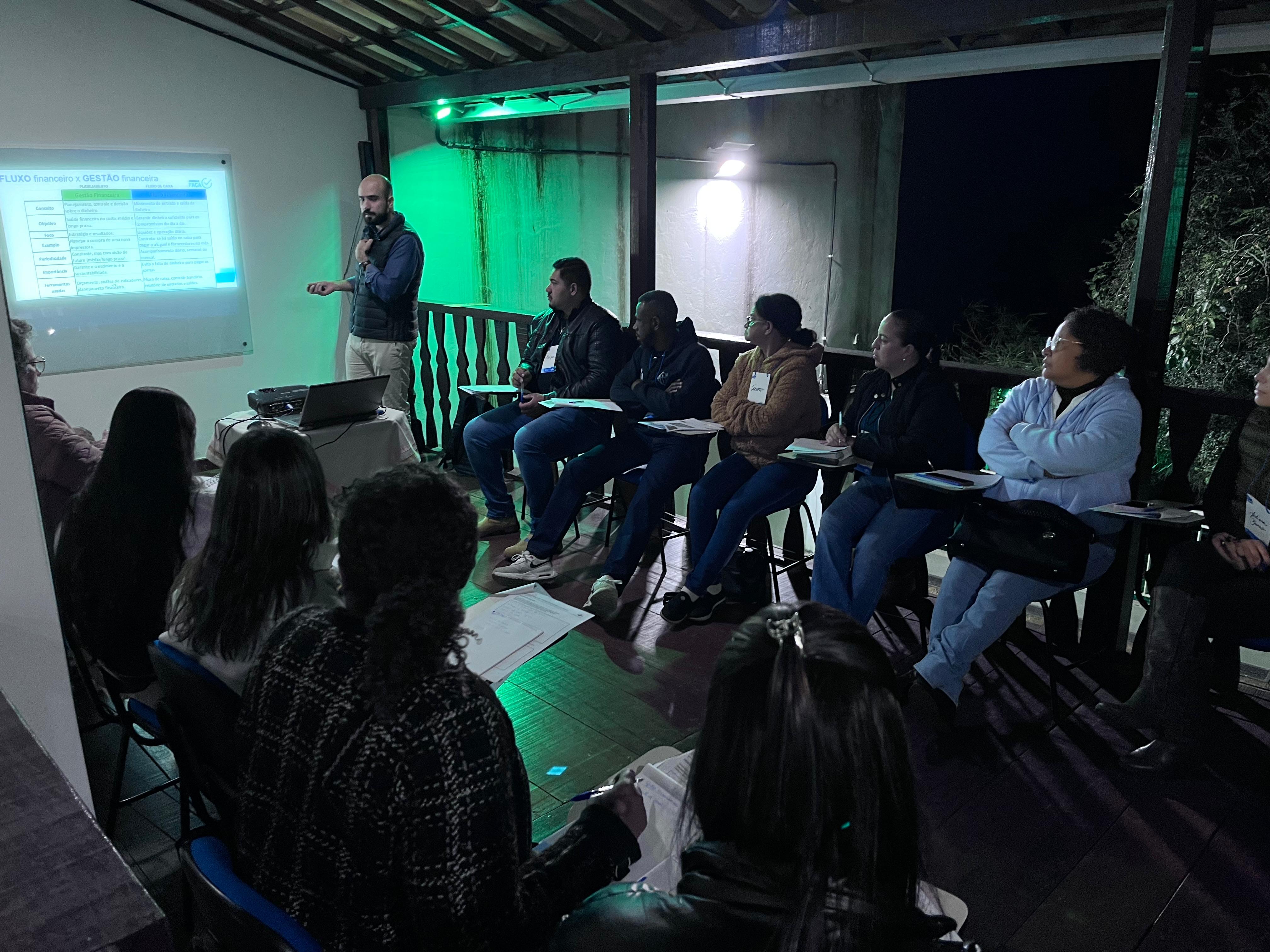 Durante a oficina, os participantes aprenderam a elaborar o Demonstrativo de Resultados, organizar a estrutura gerencial, classificar custos e despesas fixas e variáveis, além de calcular importantes indicadores como margem de contribuição, lucratividade, rentabilidade, ponto de equilíbrio e prazo de retorno. As análises vertical e horizontal também foram temas abordados.
