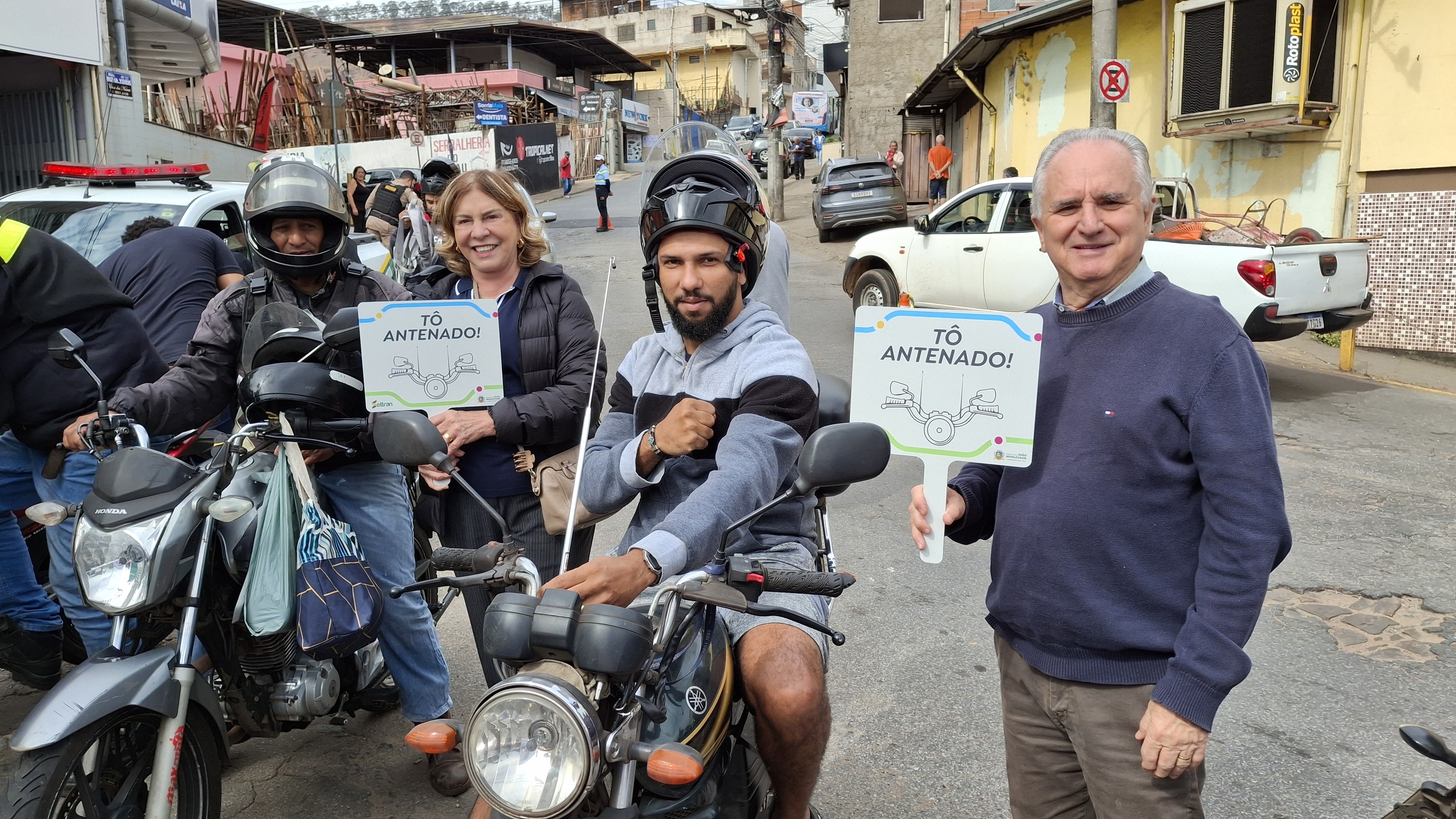 Prefeitura de João Monlevade distribui mais de 500 antenas corta-pipa para motociclistas em blitz educativa