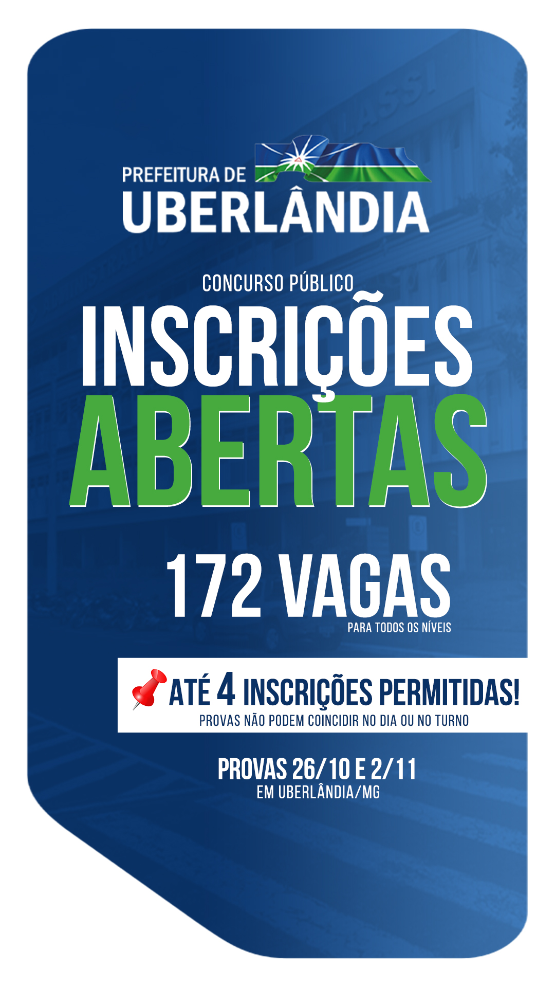 Já estão abertas as inscrições para o Concurso Público da Prefeitura Municipal de Uberlândia/MG, que oferece vagas para níveis fundamental, médio, técnico e superior, além de formação de cadastro de reserva.