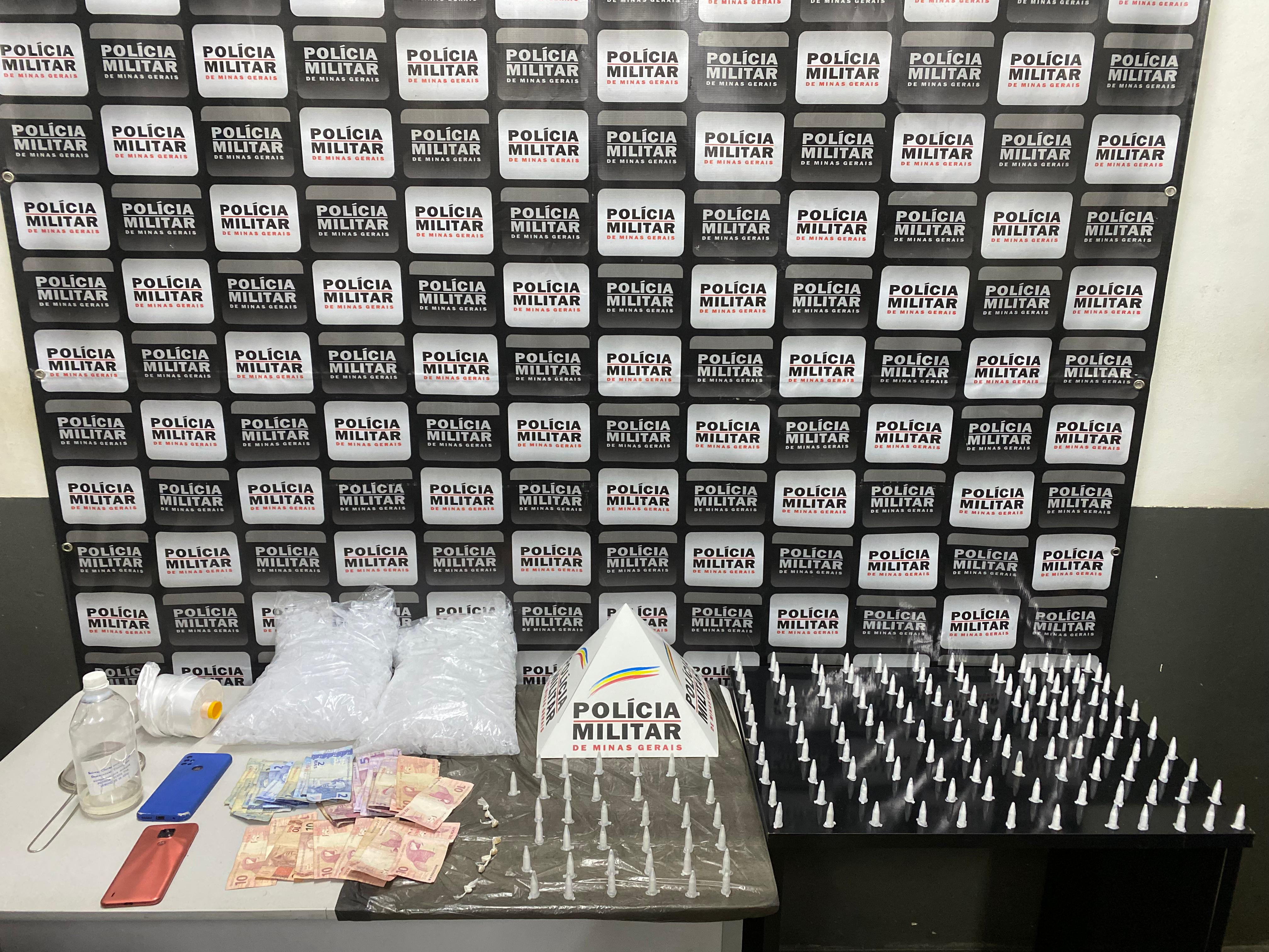 O trabalho da polícia contou ainda com o auxílio de um cão de faro, que levou as equipes a encontrar mais materiais no local. Foram apreendidos 157 pinos de cocaína, 8 pedras de crack, além de R$ 222,00 em dinheiro e um aparelho celular.