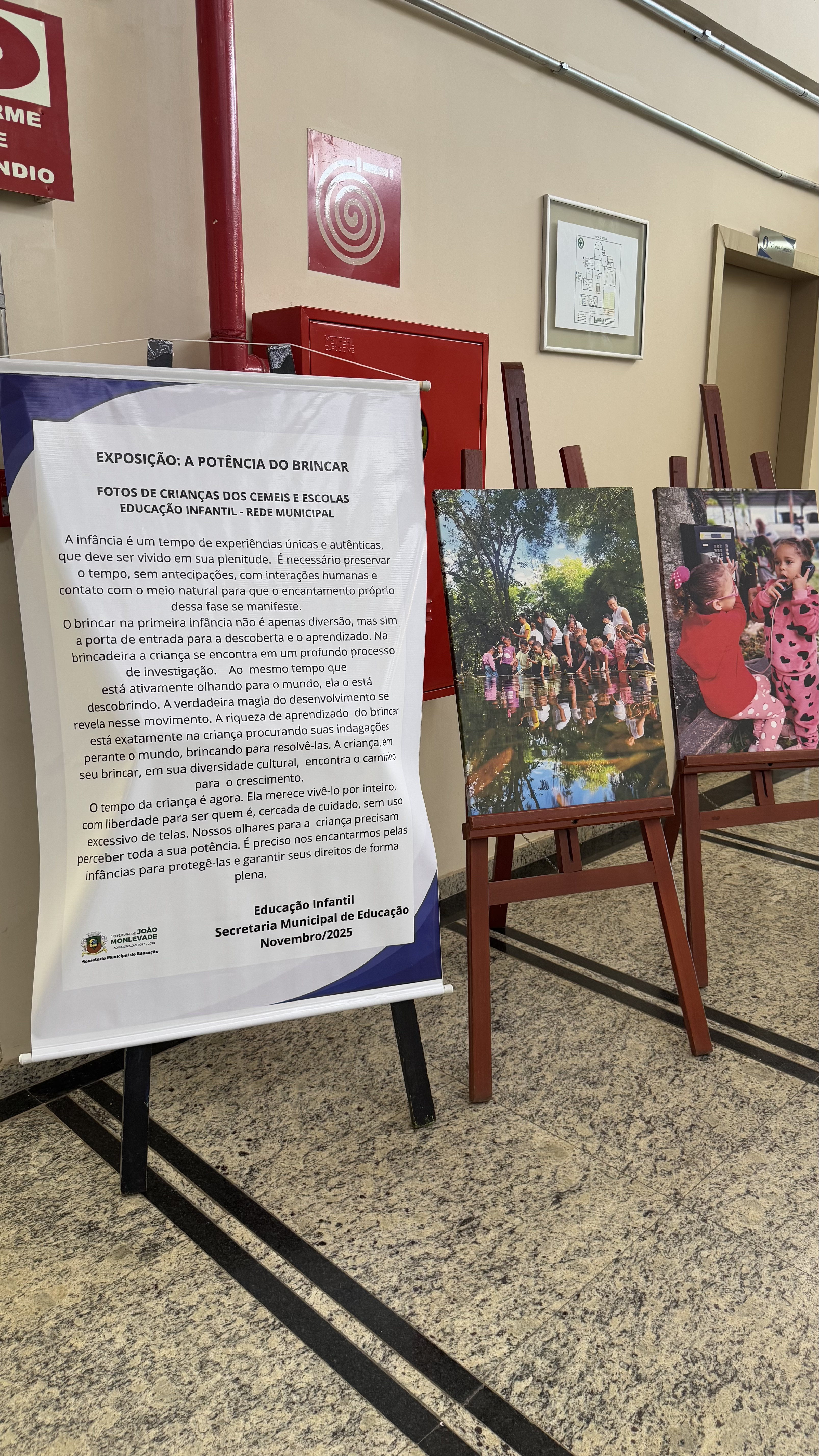A Secretaria de Educação de João Monlevade realiza na Câmara Municipal, a exposição “A Potência do Brincar”, que reúne fotografias produzidas nos Centros Municipais de Educação Infantil (Cemeis) e nas escolas de Educação Infantil da rede municipal de ensino. A mostra teve início na terça-feira (25) e segue até o dia 29 de novembro. Em breve, também ocupará espaços da sede da Prefeitura, ampliando o acesso da população ao conteúdo.
