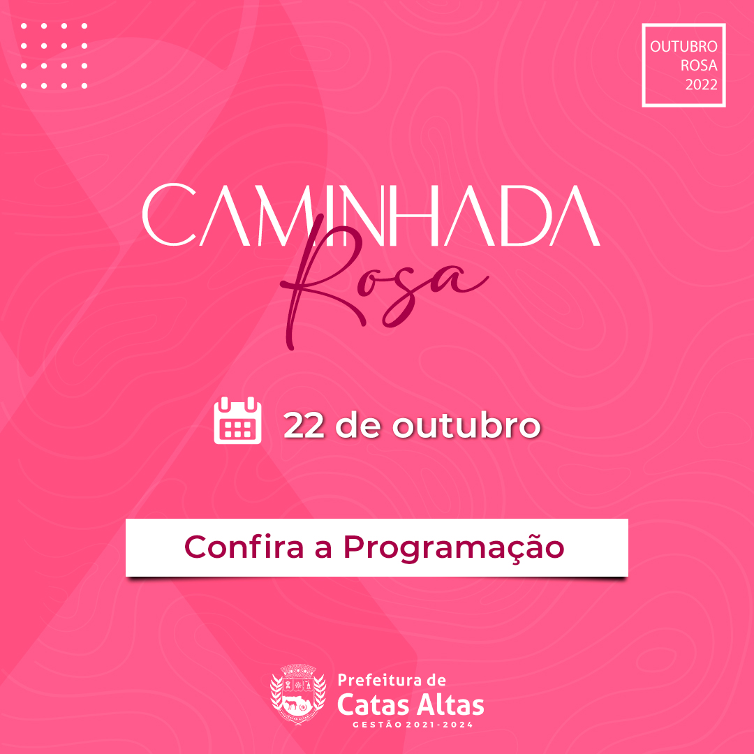 A Prefeitura de Catas Altas, por meio da Secretaria de Saúde, realizará no dia 22/10 a Caminhada Rosa, em conscientização à Campanha Outubro Rosa.