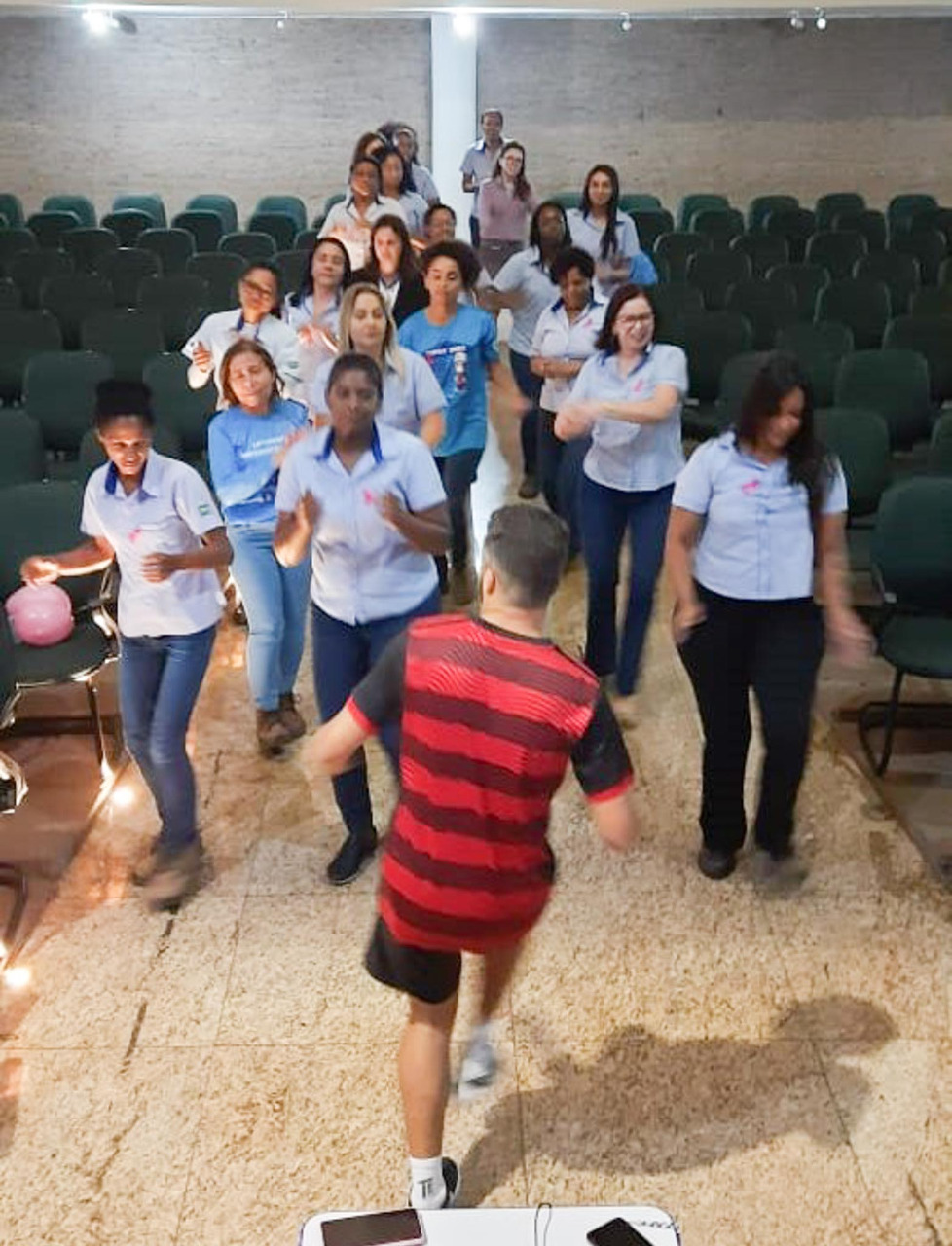 As servidoras do Departamento de Águas e Esgotos (DAE) de João Monlevade participam de ações de conscientização do câncer de mama em celebração ao Outubro Rosa. Nesta terça-feira (18), as funcionárias assistiram à palestra “Se ame. Se toque. Se cuide”, com a pedagoga, educadora sexual e sexóloga, Nádia Guimarães. Posteriormente, tiveram um momento de descontração com o professor Liniker Leandro, da Secretaria Municipal de Esportes.
