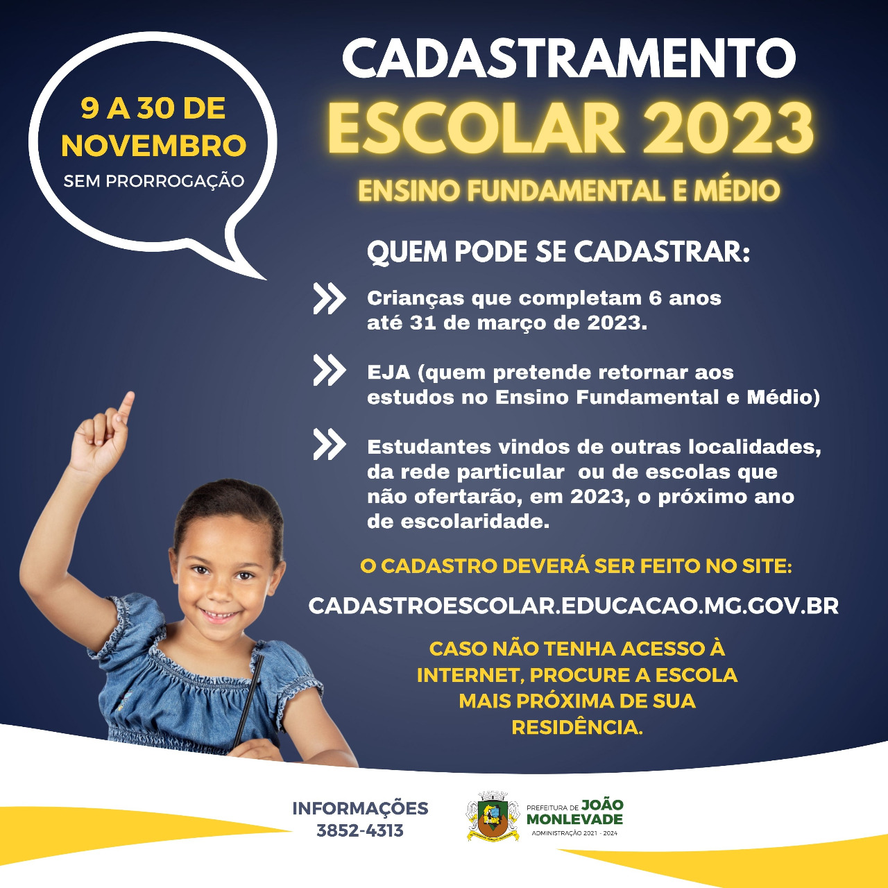 A partir da próxima quarta-feira, 9, até o dia 30 de novembro, serão realizadas as inscrições para o Sistema Único de Cadastro e Encaminhamento para Matrícula (SUCEM). Para garantir a vaga na rede pública de ensino de Minas Gerais em 2023, será necessário que pais ou responsáveis, ou o próprio aluno, quando maior de idade, acesse o site cadastroescolar.educacao.mg.gov.br. Caso não tenha acesso à internet, é necessário procurar a escola mais próxima da residência.