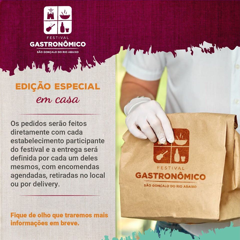 São Gonçalo do Rio Abaixo inova na organização da 16º edição do Festival de Inverno e 2º Festival Gastronômico, que ocorrem entre os dias 18 a 23 de agosto. Em virtude da pandemia do novo coronavírus, as atrações musicais serão online e a gastronomia poderá ser prestigiada na modalidade delivery.