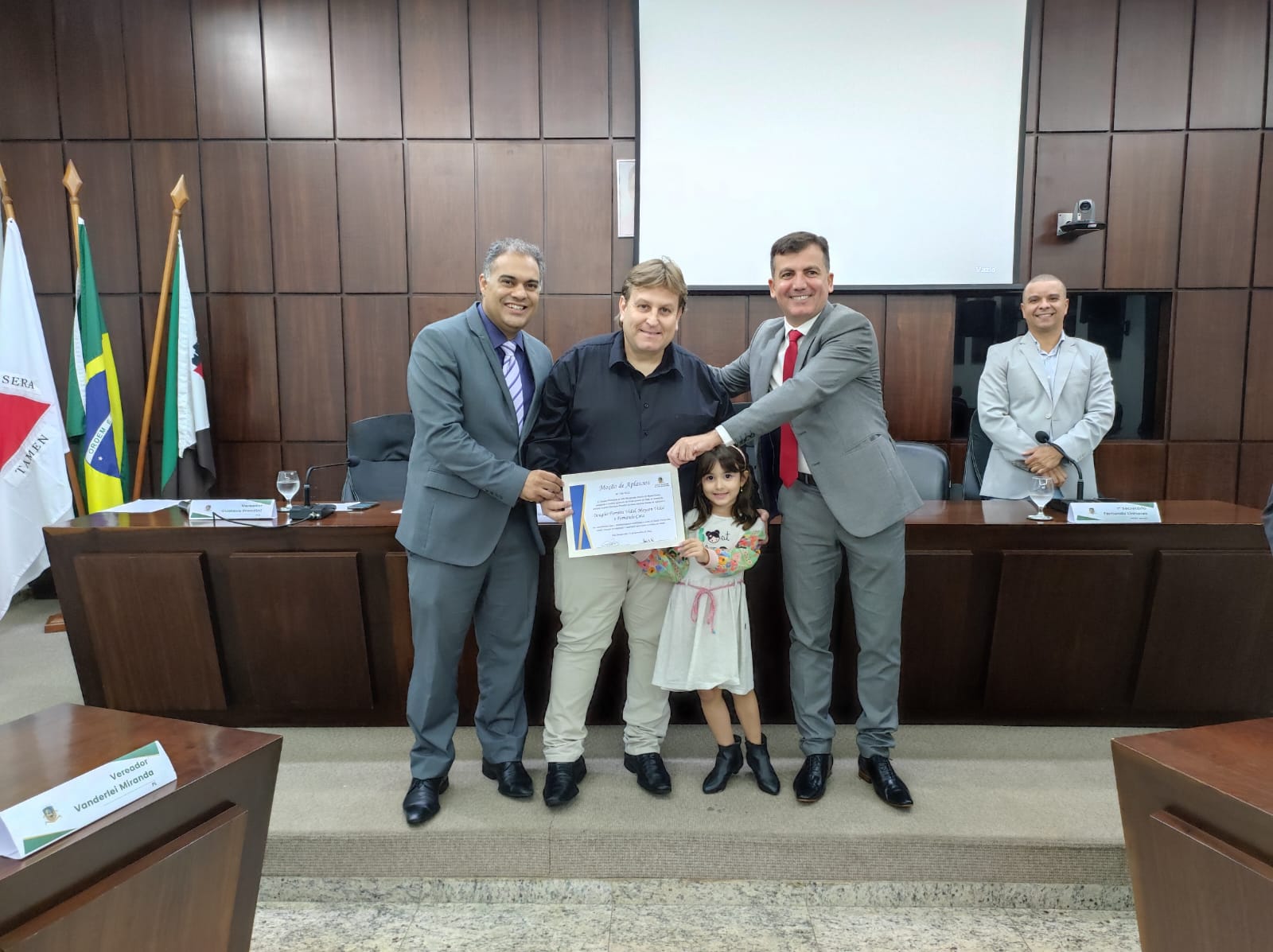 Ainda na solenidade, foi entregue a Moção de Aplausos aos empresários Douglas Ferreira Vidal, Maycon de Assis Ferreira Vidal e Fernando Cota. A homenagem também foi proposta pelo parlamentar Gustavo Prandini.