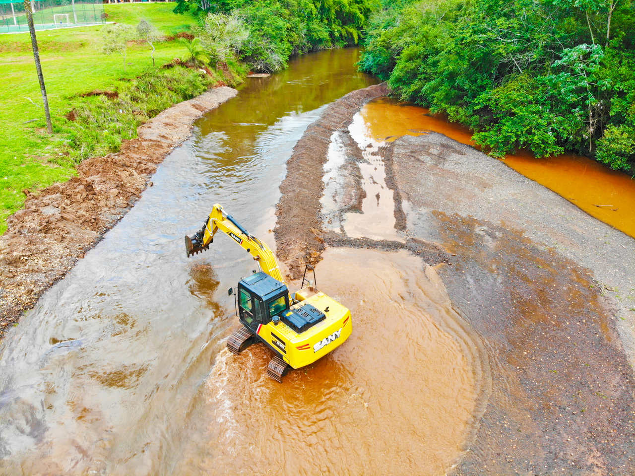 Essa ação tem como finalidade remover detritos e retirar sedimentos acumulados no fundo do rio, auxiliando no percurso d’água, e assim, evitando o transbordamento da calha do rio e as inundações.
