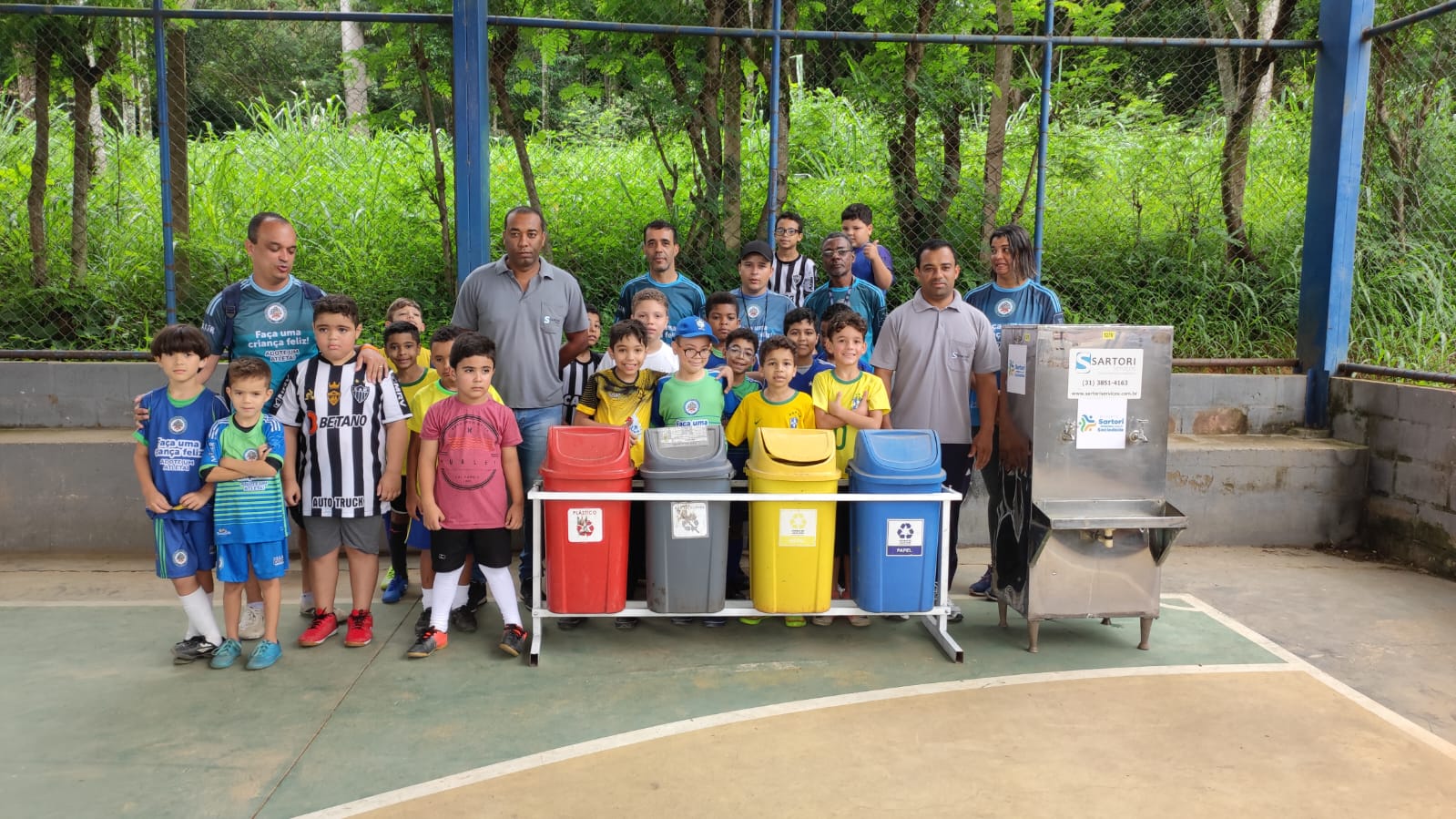 fizeram a doação de um kit de coleta seletiva, um bebedouro, se