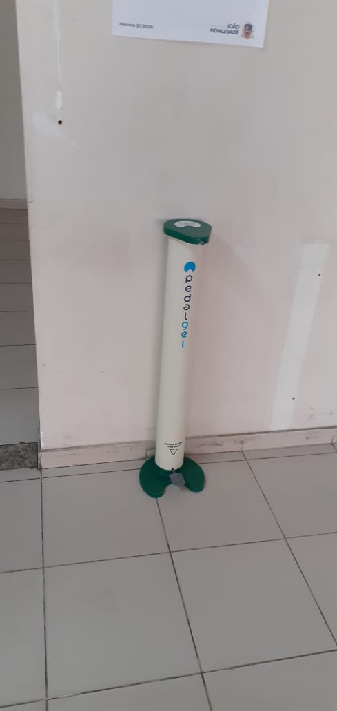 A Prefeitura de João Monlevade, por meio da Secretaria Municipal de Saúde adquiriu e instalou recentemente 17 totens higienizadores com pedal para disponibilizar álcool em gel às pessoas que procuram atendimento nas unidades de saúde. Essa é mais uma ação da Prefeitura no enfrentamento e combate ao Coronavírus.