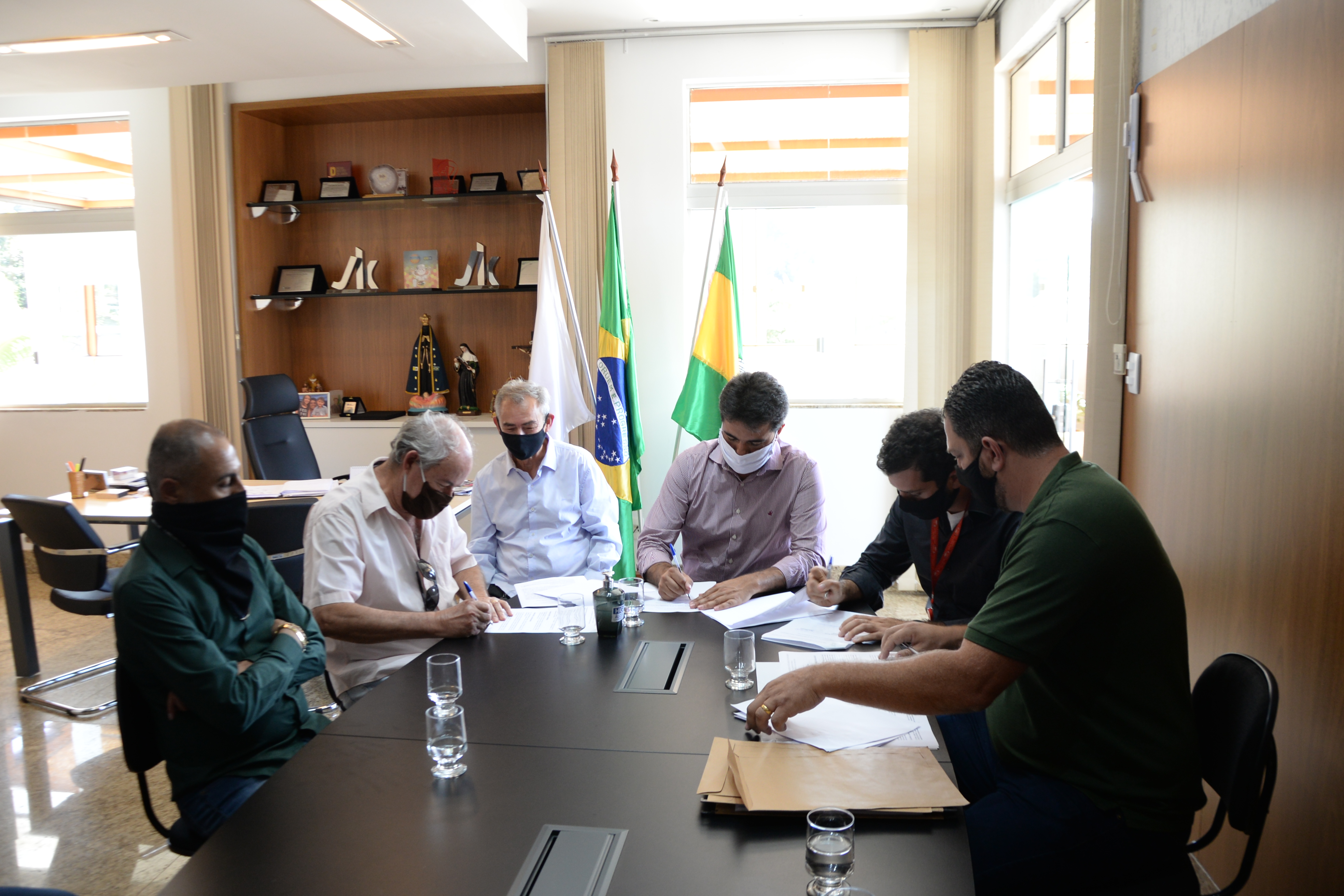 O prefeito de São Gonçalo do Rio Abaixo, Antônio Carlos Noronha Bicalho, juntamente com o secretário de Desenvolvimento Econômico, Breno Fonseca Starling, receberam, na tarde desta sexta-feira (14), representantes das empresas Laticínio Minas Mais e Refil Resíduos Industriais para assinatura de concessão de área nos Distritos Industriais.