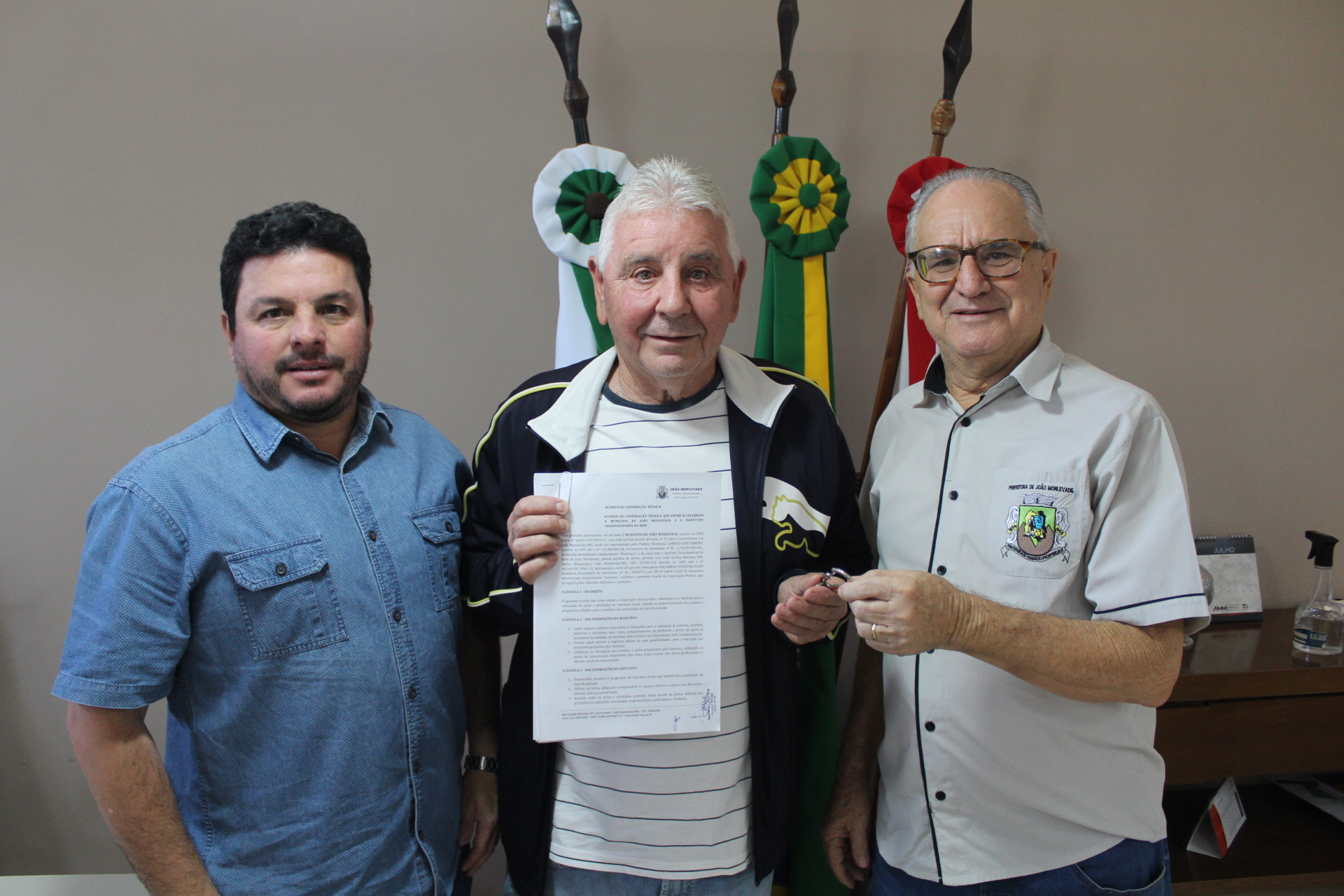 A Prefeitura de João Monlevade cedeu um imóvel para o Instituto Trabalhadores do Bem desenvolver seu trabalho social. Este mês, em reunião realizada no Gabinete, o prefeito Dr. Laércio Ribeiro (PT) e o vice-prefeito e secretário municipal de Planejamento e Desenvolvimento Econômico, Fabrício Lopes (Avante), entregaram as chaves do imóvel ao presidente da entidade, Valdemar Noronha Filho.
