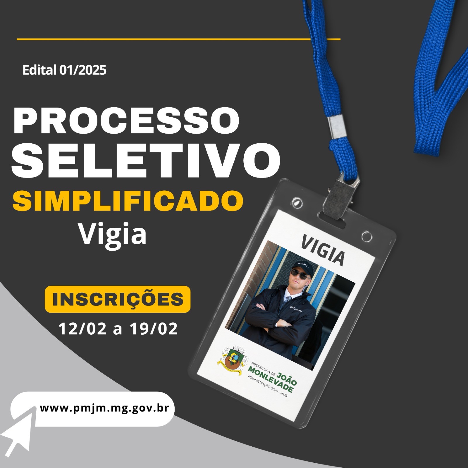 A Prefeitura de João Monlevade, por meio da Secretaria Municipal de Administração, publicou edital do Processo Seletivo Simplificado para provimento de vagas para vigia.