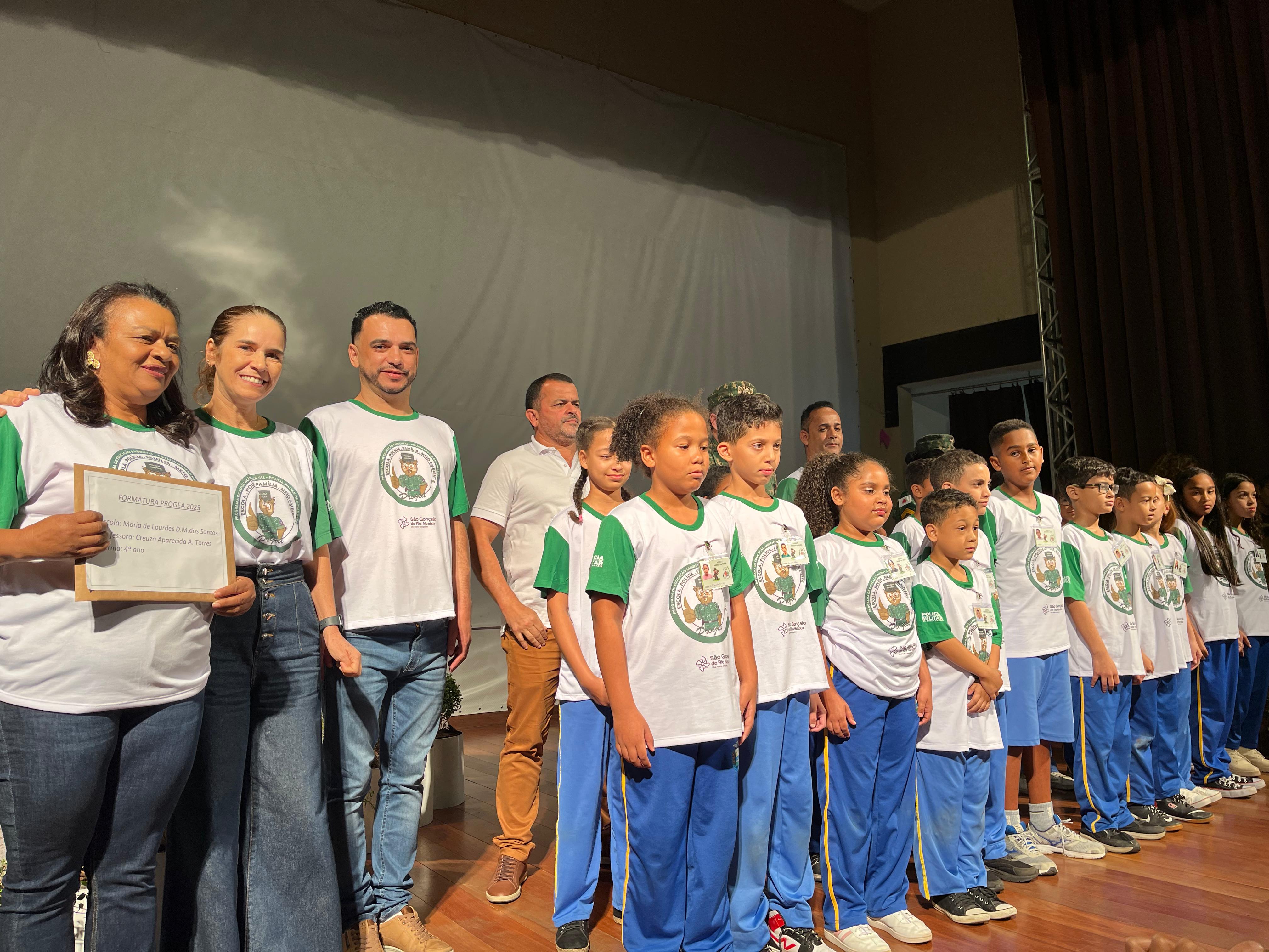 O evento contou com a presença de autoridades locais, incluindo o presidente da Câmara de Vereadores Marlon Túlio Pessoa Costa, a secretária de Educação Lucinda Barcelos, o secretário de Meio Ambiente Diêgo de Oliveira Perpétuo, além dos instrutores do programa, 1° sargento PM Wanderson Antônio Ribeiro e 3° sargento PM Nathália Núbia Macieira.