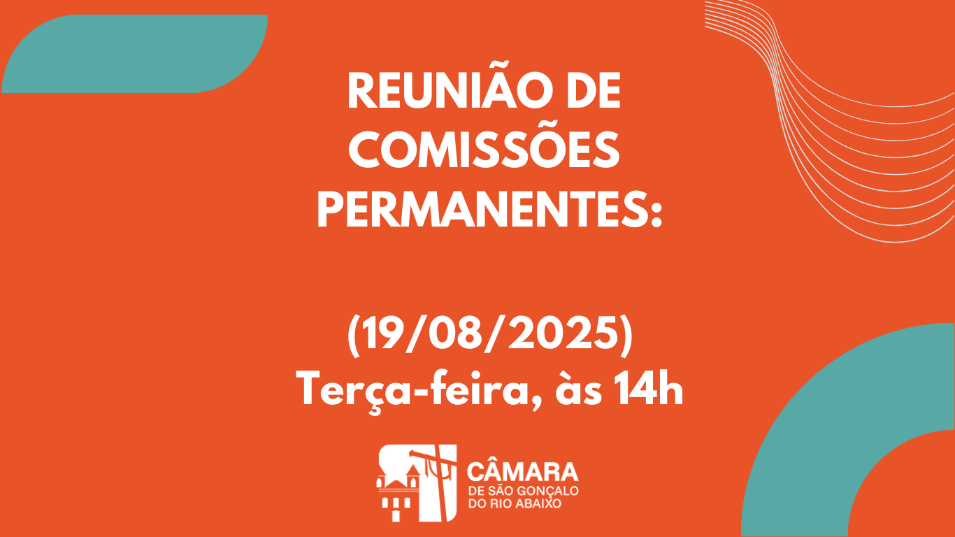 A Câmara Municipal de São Gonçalo do Rio Abaixo realiza nesta terça-feira, 19 de agosto, a primeira Reunião de Comissões Permanentes do segundo semestre. O encontro acontecerá a partir de 14h, no Plenário da Sede do Legislativo Municipal.
