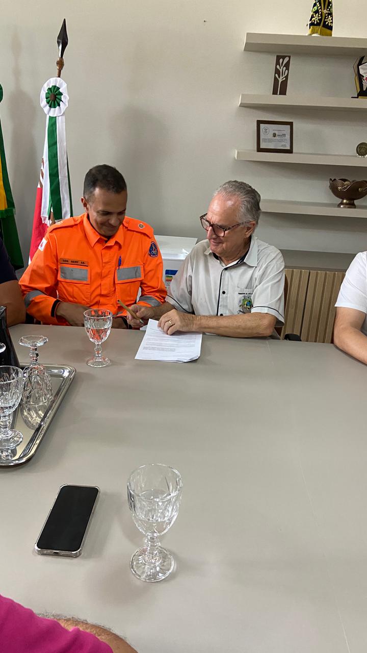 A Prefeitura de João Monlevade realizou, na manhã desta quinta-feira (4), uma reunião para a sanção do Projeto de Lei que autoriza a cessão de uso do caminhão auto bomba ao Corpo de Bombeiros Militar de Minas Gerais. No encontro, também foi realizada a assinatura do termo de cessão, oficializando a transferência do veículo para uso da corporação.