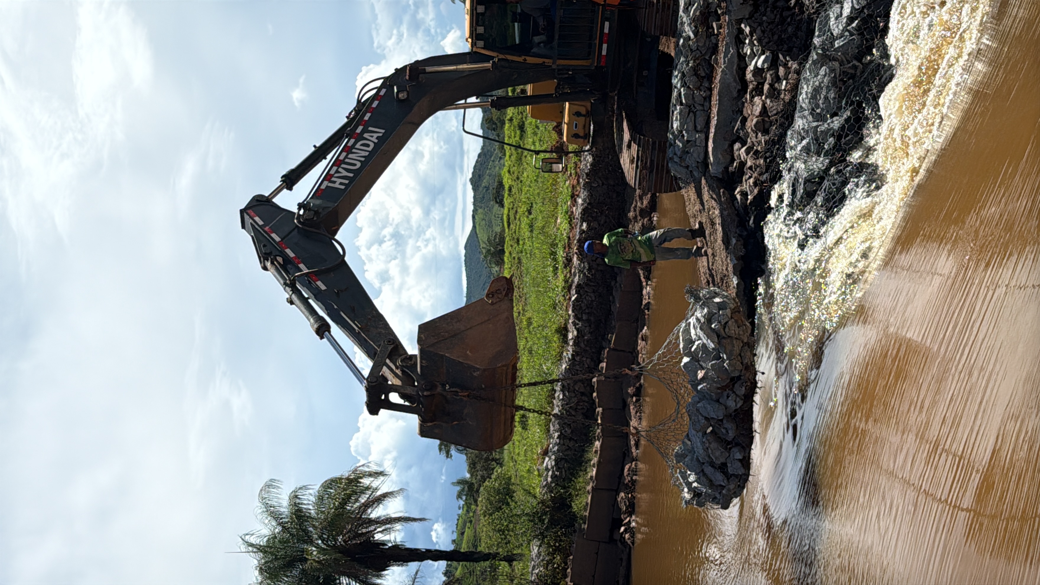 Para garantir a estabilidade da barragem e a segurança da captação de água, estão sendo utilizados blocos de concreto com peso aproximado de 1.700 quilos, além da instalação de gabiões tipo saco no trecho afetado. As medidas visam restabelecer o nível adequado do rio e assegurar o pleno funcionamento do sistema de abastecimento.