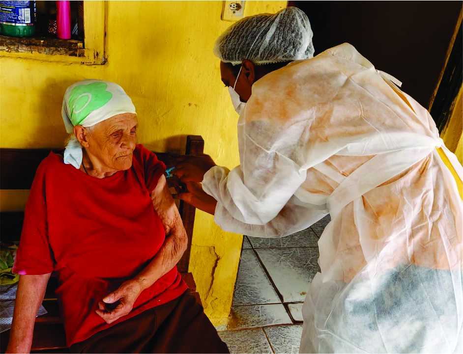 Para garantir a segurança dos idosos, esta etapa da vacinação está sendo realizada nas residências, de acordo com cadastro no PSF do município.