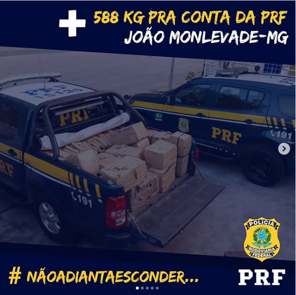 Na tarde de ontem, 10, em João Monlevade, PRFs realizaram uma fiscalização minuciosa a um veículo e encontraram, sob a carroceria, aproximadamente 588 kg de maconha.O condutor, um homem de 44 anos, informou que receberia em torno de 3 mil reais para levar a carga até a Bahia.