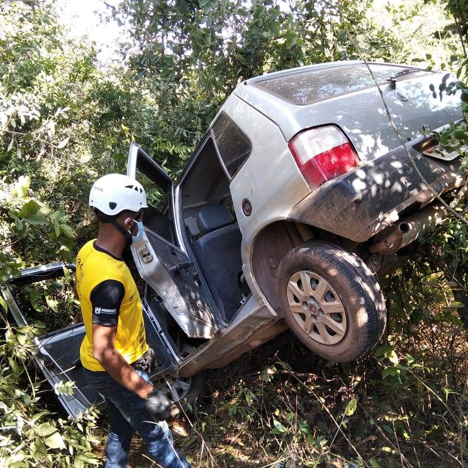 O carro despencou de um barranco à aproximadamente 500m do local de um acidente que aconteceu ontem, na mesma estrada e matou três pessoas, incluindo um servidor da Prefeitura de Catas Altas.