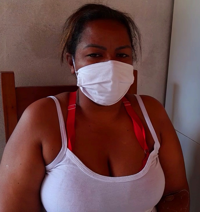 Em casa e totalmente recuperada, Maria não tira a máscara; alerta a todos que o vírus é muito agressivo e pede às pessoas que se cuidem com todas as medidas possíveis para evitar a transmissão.