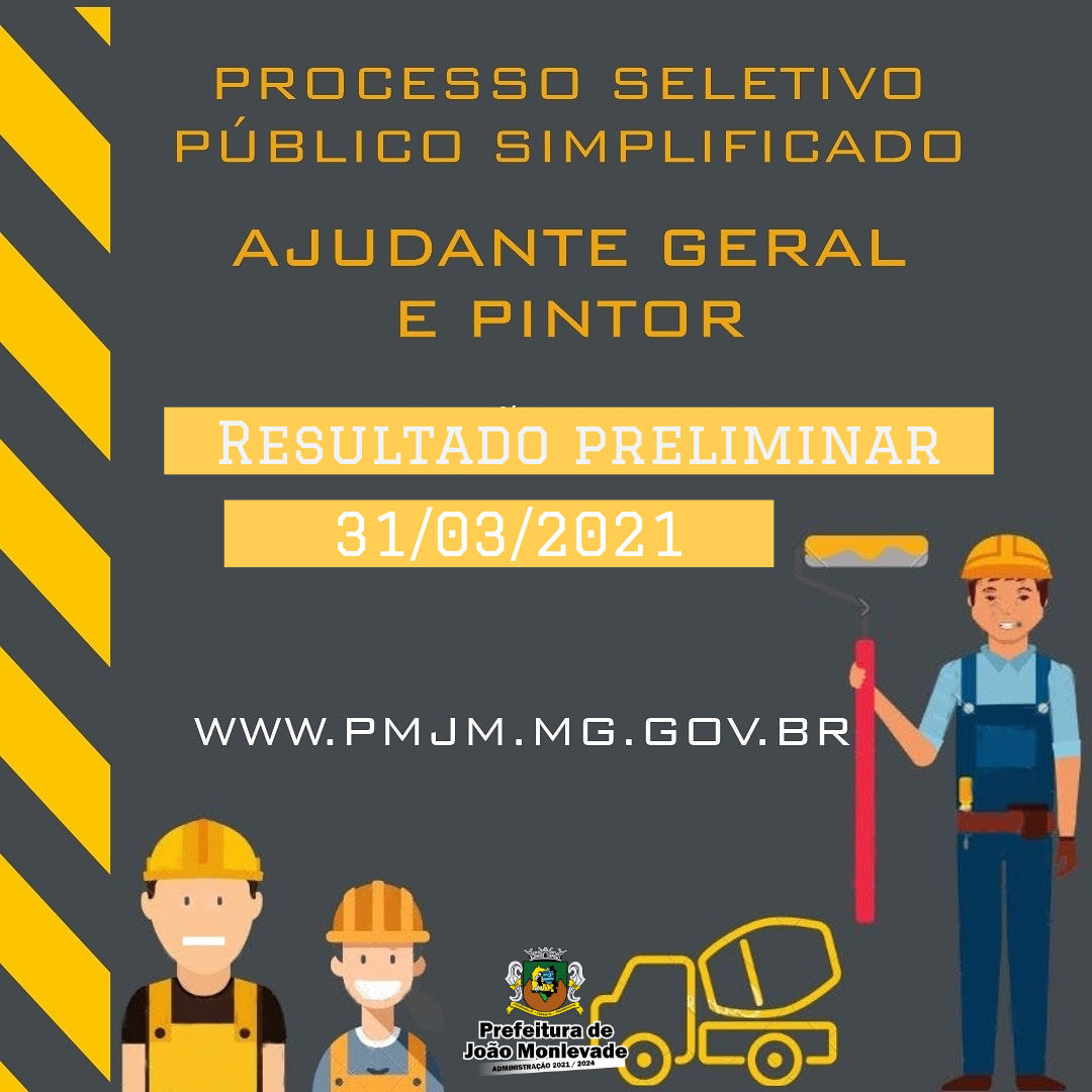 São oferecidas 18 vagas para ajudante geral e 5 para o cargo de pintor. Os aprovados serão convocados de acordo com a necessidade da administração.