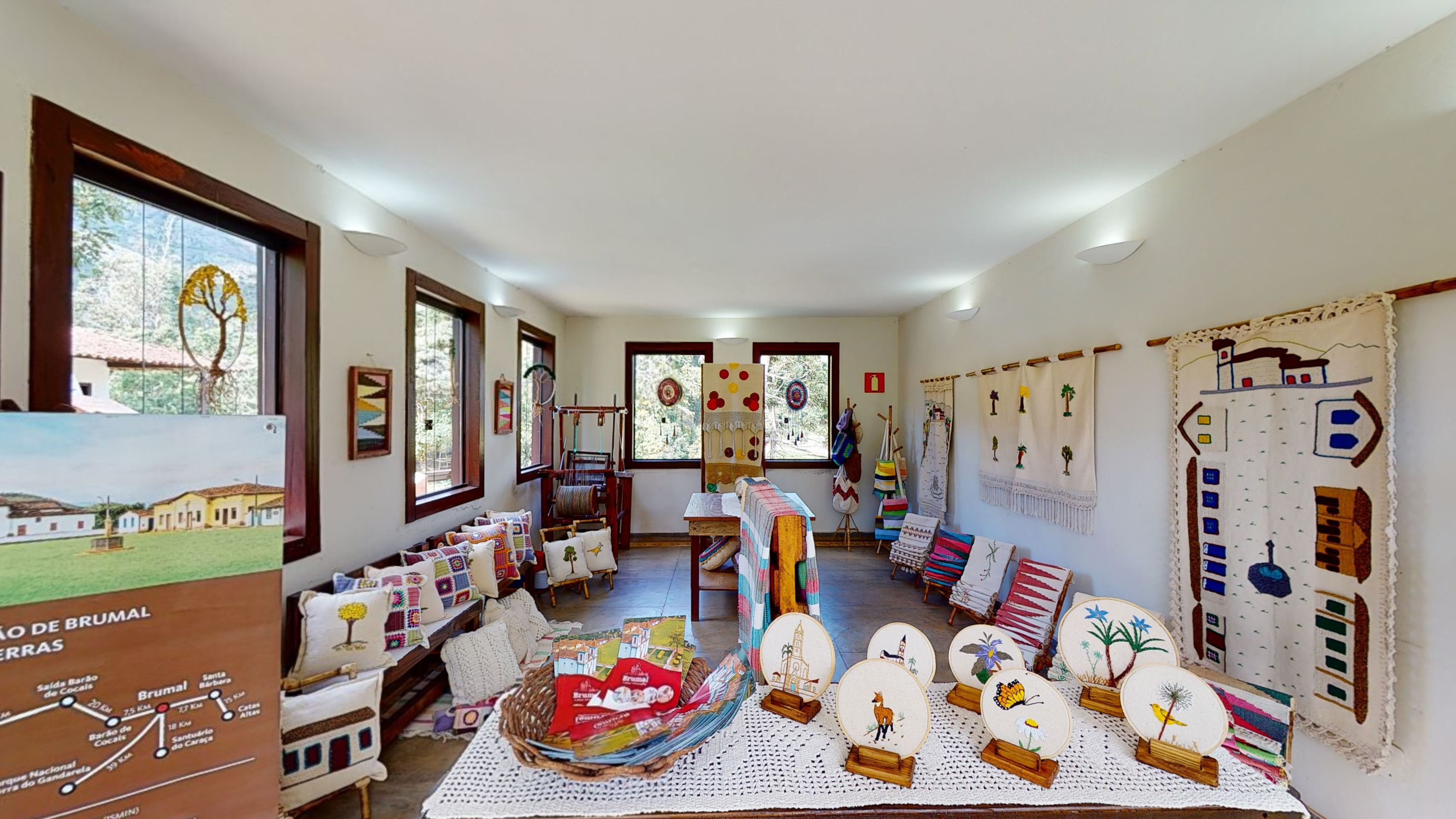 Fundada por bandeirantes no início do século XVIII, a Vila de Brumal está localizada entre as serras do Caraça, Piedade e do Gandarela, fazendo parte do Circuito Entre Serras e da Estrada Real. Os produtos da exposição mesclam técnicas artesanais para representar os bens patrimoniais tombados da comunidade — como a Igreja de Santo Amaro, o casario colonial e a Cavalhada de Brumal — e diversos fazeres artesanais, criando produtos com identidade própria e com a cara da Vila.