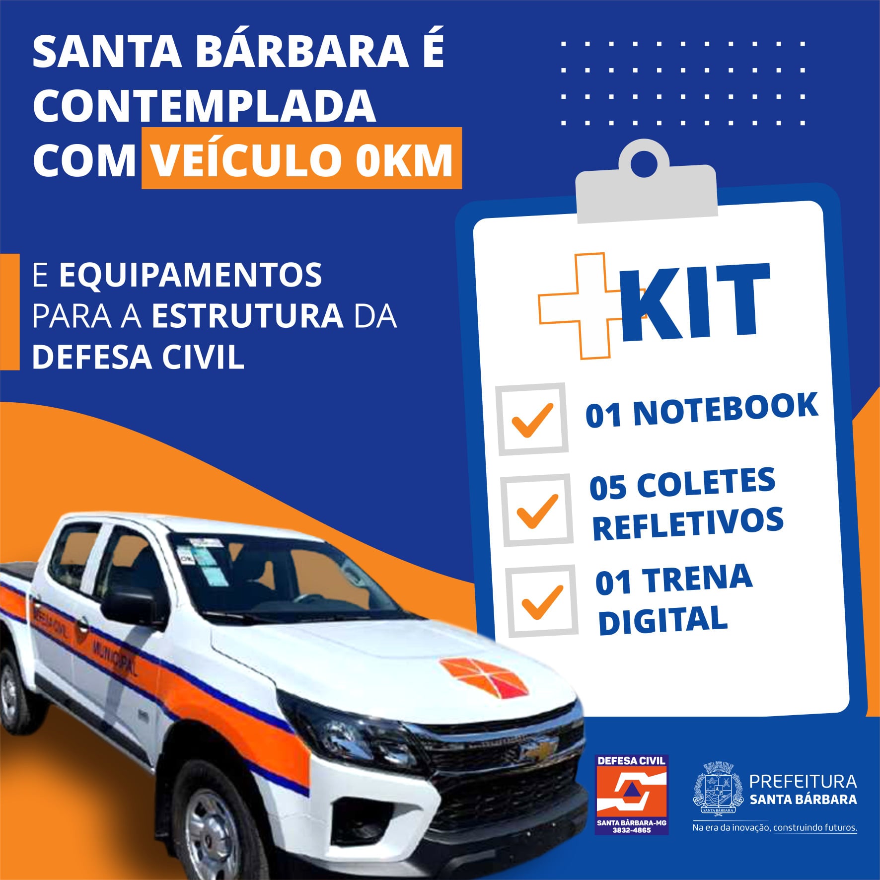 A Defesa Civil de Santa Bárbara está entre os 479 municípios mineiros, que foram contemplados para receber o kit da defesa civil, conforme informação da Coordenadoria Estadual de Defesa Civil (Cedec).