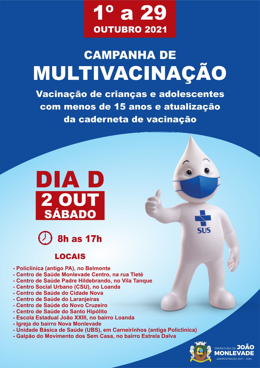 Em João Monlevade a vacinação ocorrerá de 8h as 17h em 12 locais: Policlínica (antigo PA), no bairro Belmonte; Unidade Básica de Saúde (UBS) Carneirinhos (antiga Policlínica); Escola Estadual João XXIII, no bairro Loanda; Galpão do Movimento dos Sem Casa, no bairro Estrela Dalva; Igreja do bairro Nova Monlevade; Centro de Saúde Monlevade Centro, na rua Tieté; Centro de Saúde Padre Hildebrando, no bairro Vila Tanque; Centro Social Urbano (CSU), no bairro Loanda; e nos centros de Saúde dos bairros Cidade Nova, Laranjeiras, Novo Cruzeiro e Santo Hipólito.
