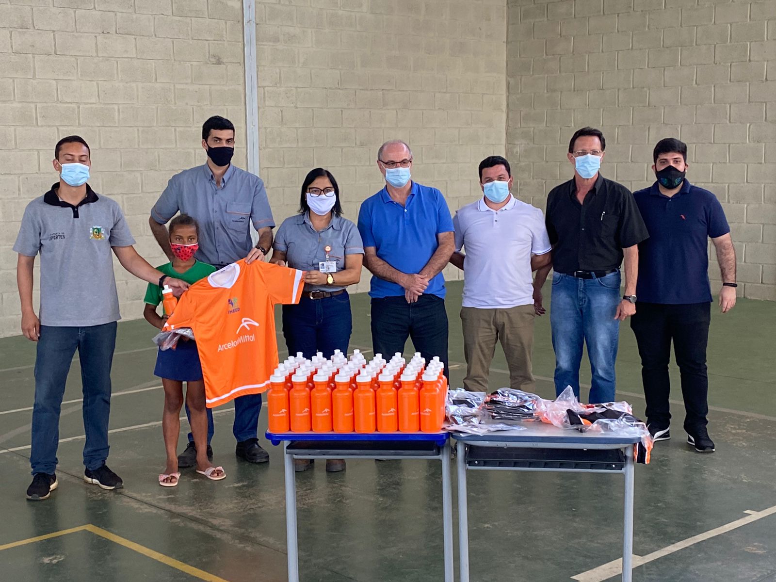 Entrega de uniforme – No dia 28 de outubro, foi realizada a aula inaugural do projeto Esporte Cidadão na quadra esportiva da escola, com entrega de kits contendo uniformes (camisa e calção), máscaras de proteção e squeezes (garrafinhas).