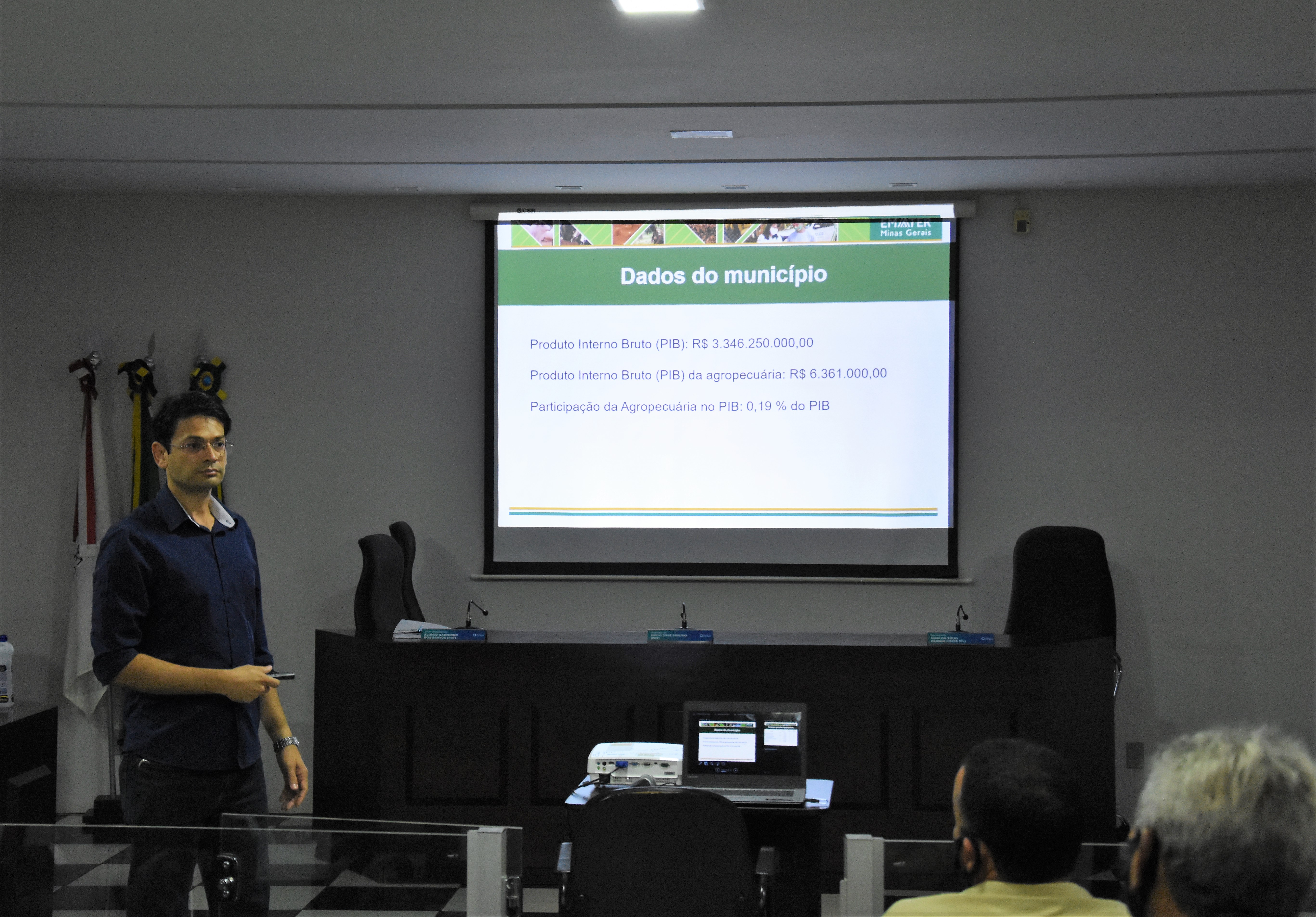 Em seguida, o engenheiro agrícola e responsável pelo escritório da Emater na cidade, Gleidson Morais de Souza, apresentou os dados específicos de São Gonçalo: com um Produto Interno Bruto (PIB) de R$ 3.346.250.000,00, o PIB da agropecuária representa R$ 6.361.000,00. Assim, a participação do setor corresponde a 0,19% do PIB.
