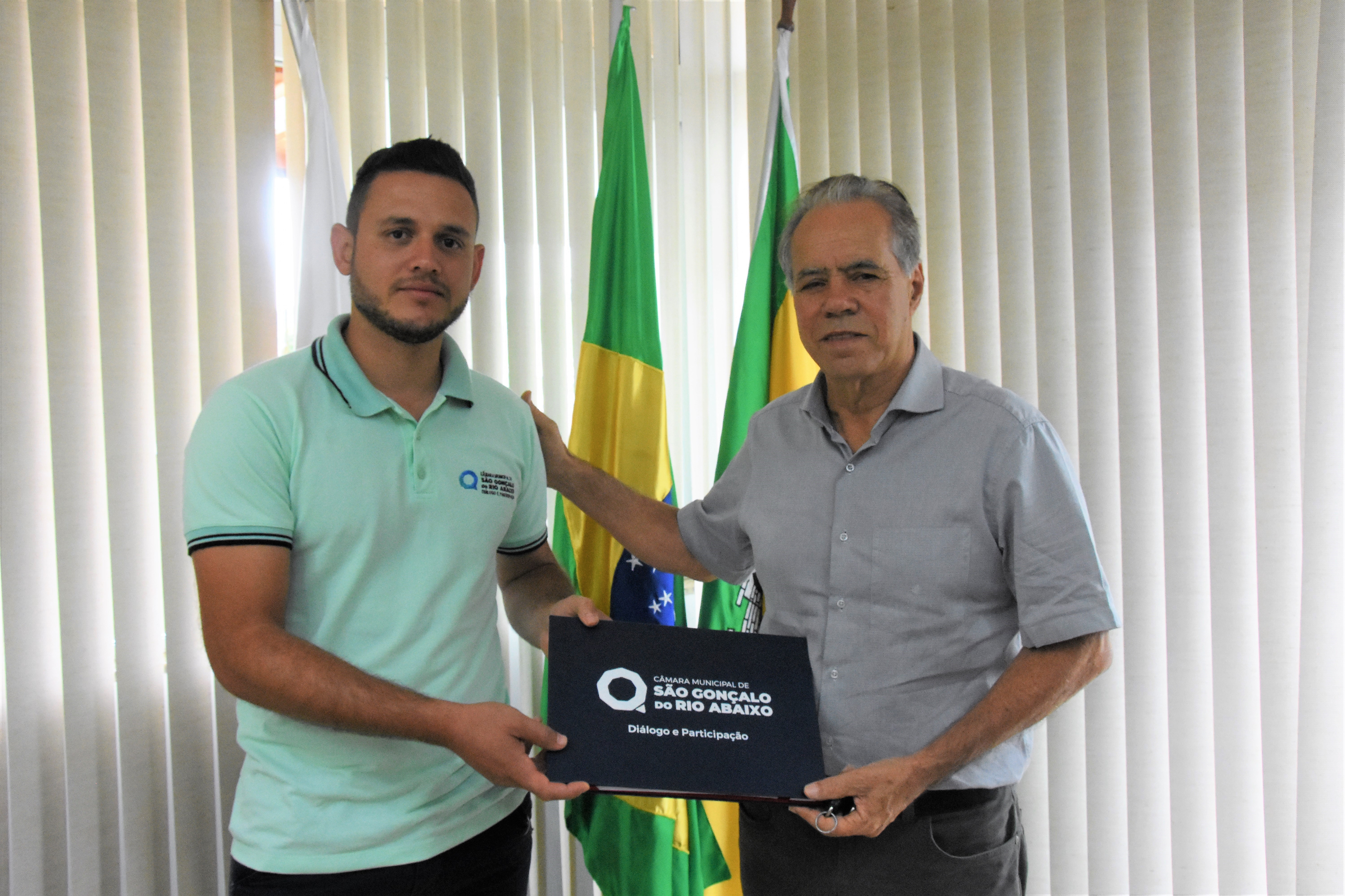 Na manhã desta sexta-feira, 6 de maio, o Presidente da Câmara, vereador Diego José Ribeiro (PDT), realizou a entrega das chaves dos dois veículos da Câmara Municipal de São Gonçalo do Rio Abaixo ao Executivo Municipal, junto ao ofício nº 59/2022, tendo sido recebidos pelo Prefeito Municipal, Raimundo Nonato Barcelos, o Nozinho (PDT). Na oportunidade, foi indicado que um carro seja utilizado na Secretaria de Meio Ambiente, e o outro na Secretaria de Trabalho e Desenvolvimento Social. Os automóveis são do modelo “Voyage”, ano 2017/2018.