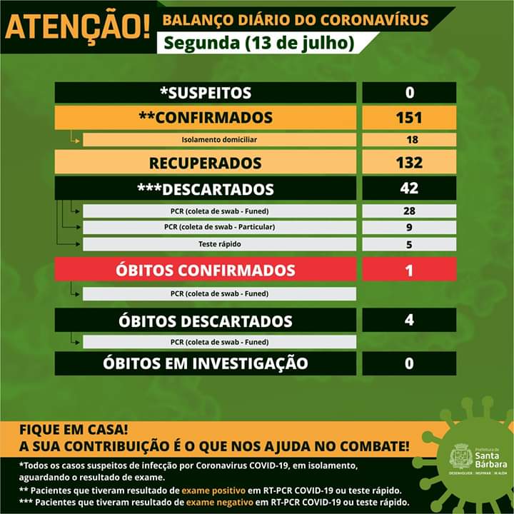 Santa Bárbara registra óbito por covid-19 nesta segunda-feira,13