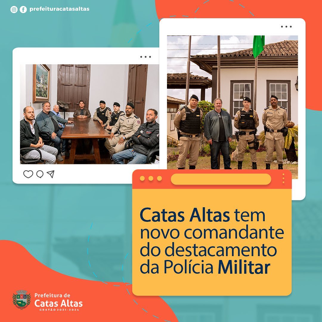 Na manhã da última terça-feira, 06/09, o Prefeito Saulo recebeu, na sede da Prefeitura, o novo comandante do destacamento da Polícia Militar de Catas Altas, o Sargento Miranda. O policial esteve acompanhado do Tenente Winder e do Tenente Coronel Barcelos.
